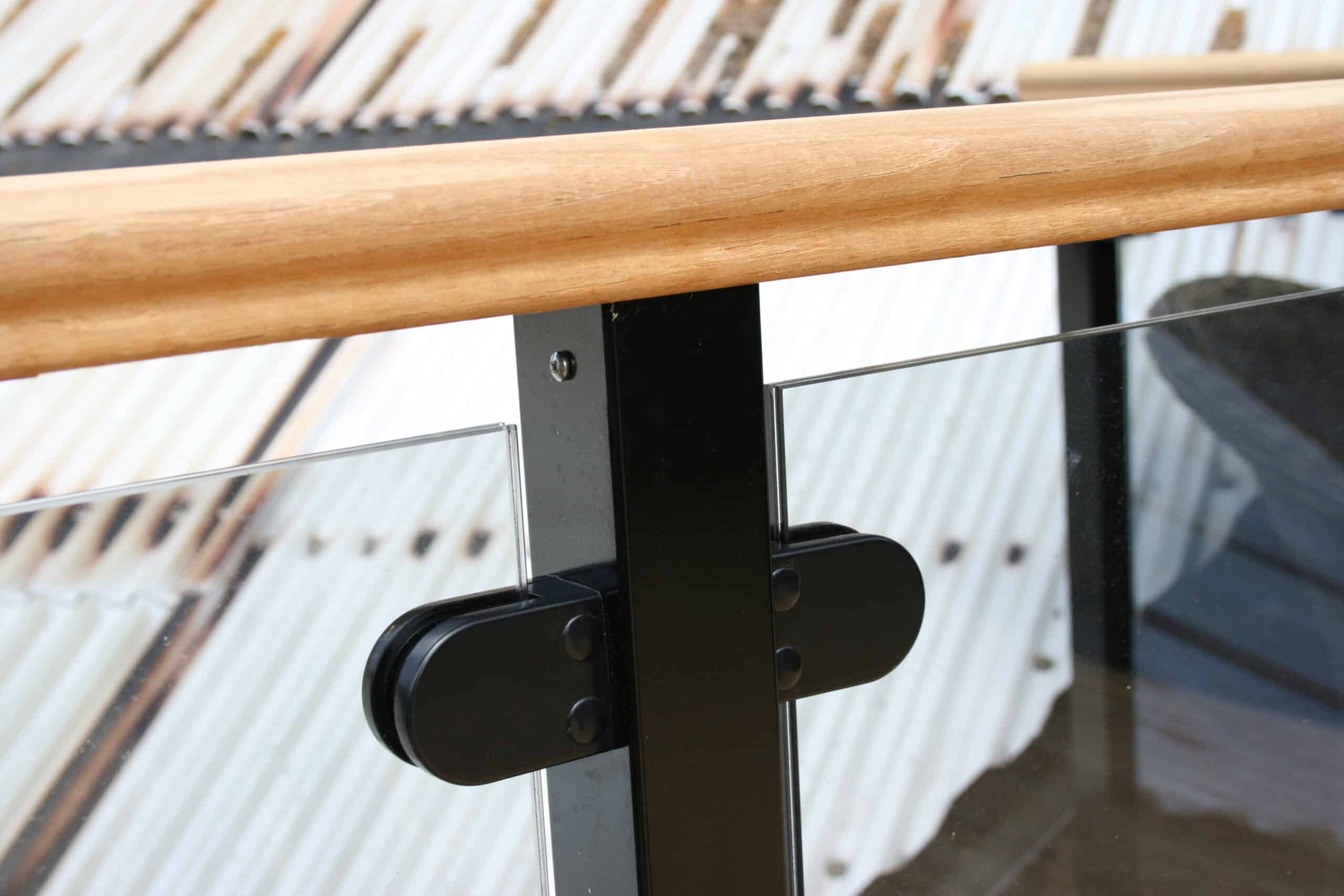 Räcket har dock en variant av klämfästen som numera har utgått. Vi kommer inom kort visa bilder på vårt nya klämfäste för aluminium samt den nya fyrkantiga foten för räcken som är ovanpå.